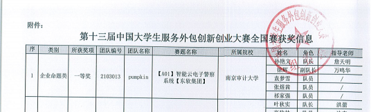 2022年8月5日至7日,第十三届“中国大学生服务外包创新创业大赛”全国总决赛在江苏无锡圆满落幕。颁奖仪式于8月7日上午由网易无锡进行全程直播。经过激烈角逐,我校学子在比赛中共获得企业命题类(A类)中部区域赛一等奖1项、二等奖1项,三等奖1项。国赛二等奖1项、三等奖1项。
