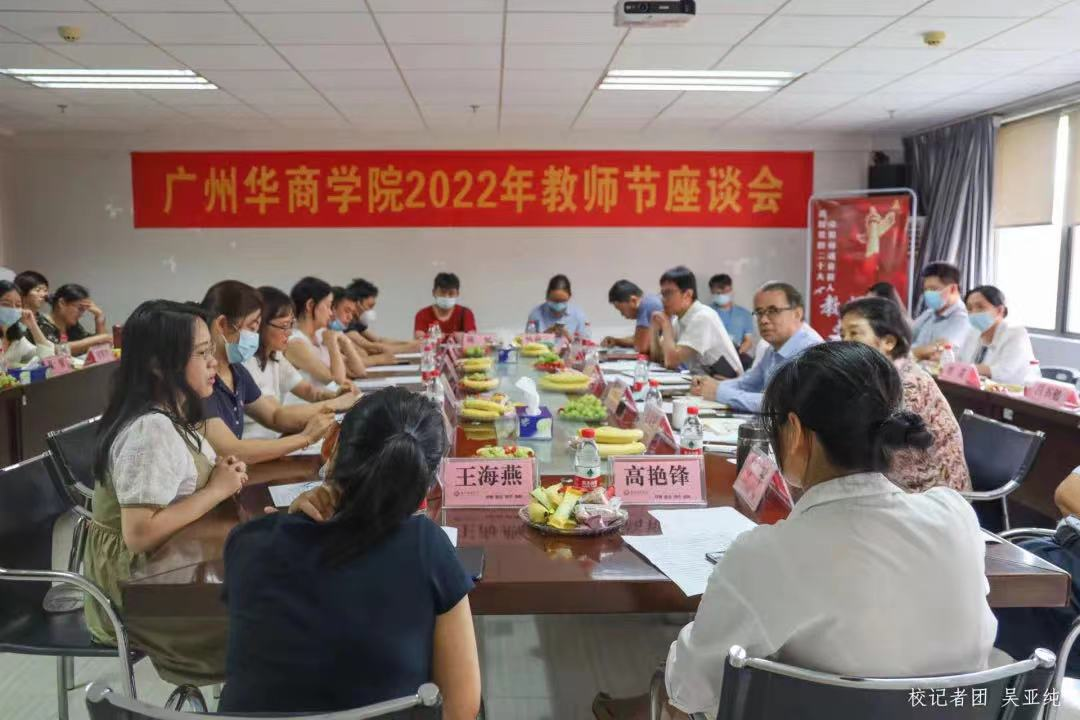 春华秋实,桃李沁香。为营造尊师重教的良好氛围,进一步完善师资队伍建设,推动学校教育教学改革,在第38个教师节来临之际,9月6日,我校在增城校区召开“迎接党的二十大,培根铸魂育新人”教师节主题座谈会。学校高级顾问胡军教授,执行校长郭银华,校党委苏宁书记,副校长支戈壁、王力东,相关职能部门领导及中青年骨干教师代表出席了座谈会。会议由支戈壁副校长主持。