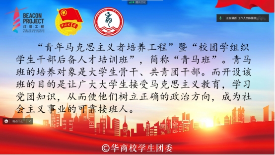 为深入学习宣传贯彻习近平总书记在庆祝中国共产主义青年团成立100周年大会上的重要讲话精神,激励华商青年牢记青春使命,践行“请党放心,强国有我”的青春誓言,成长为中国特色社会主义事业的合格建设者和可靠接班人。williamhill中国官网第十一期“青马班”学员选拔宣讲会于10月6日晚上19:30在线上开展。