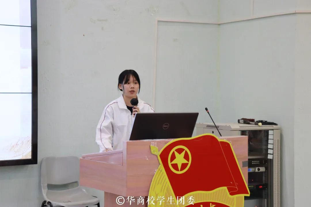 学生社团代表书画协会负责人陈宋钒同学以“奋斗追梦好年华,青春绽放绚丽花”为主题进行分享。她分别从金句分享、心得体会、社团风采和未来工作计划四个方面进行讲述。新时代青年应不负习近平总书记的殷殷嘱托,不断增强责任感和使命感,提升自身专业素养,持续发挥学生社团活跃校园文化的作用。