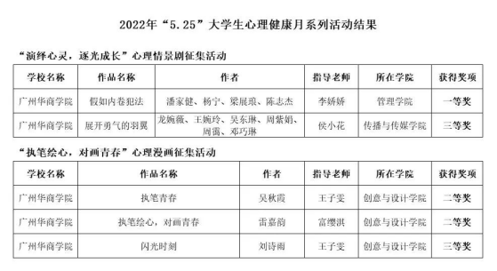 为增强大学生心理健康意识,推动高校心理健康教育内容与形式创新,提高大学生心理素质,广东省教育厅举办了“5.25”大学生心理健康月系列活动,活动涵盖心理漫画、心理情景剧、心理健康主题演讲、心理公益广告、心理拓展训练微视频等内容。