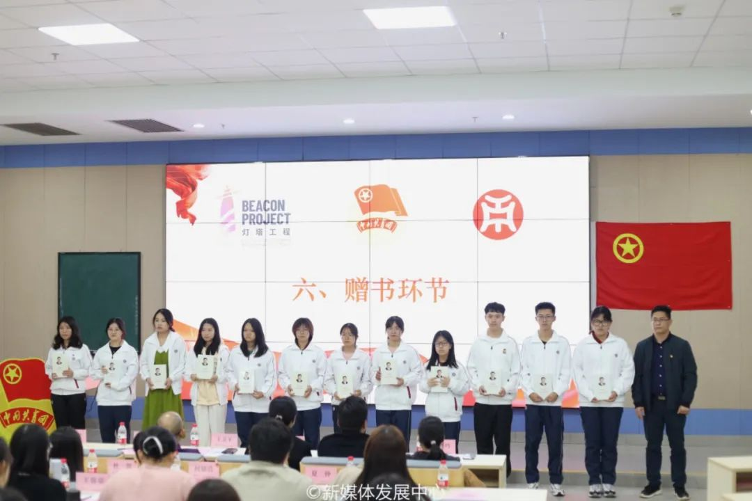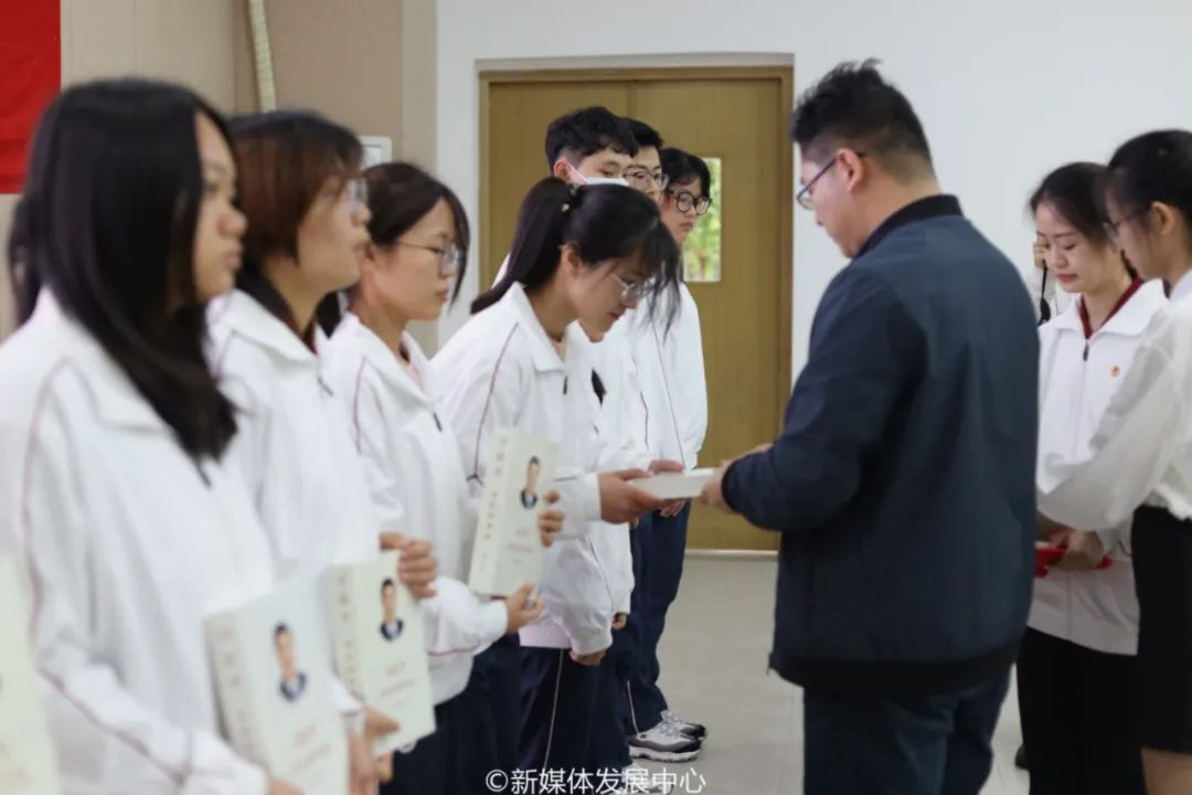 四会校区党委委员、管委会副主任、学校教务处段晓聪副处长向各学院入团积极分子代表赠送书籍。