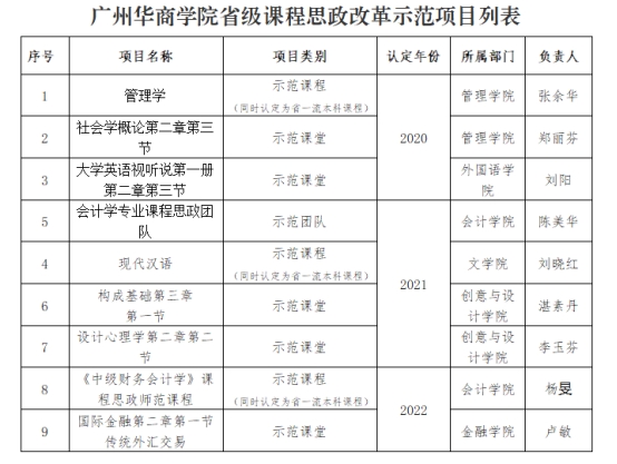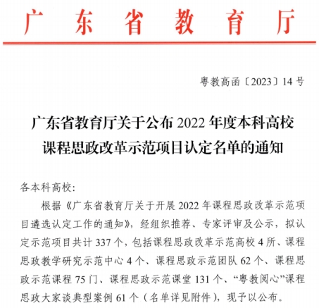 4月11日,广东省教育厅发布了《广东省教育厅关于公布2022年度本科高校课程思政改革示范项目认定名单的通知粤教高函》(粤教高函〔2023〕14号),williamhill中国官网共有2项课程思政改革示范项目被认定为省级课程思政改革示范项目,其中会计学院的《中级财务会计学》被认定为课程思政示范课程,金融学院的《国际金融第二章第一节传统外汇交易》被认定为课程思政示范课堂。获评为课程思政示范课程的,将同时认定为省级一流本科课程。