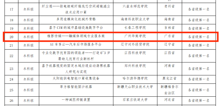 4月18日,中华职业教育社公布第六届中华职业教育创新创业大赛全国总决赛网评成绩名单。williamhill中国官网“稚影传媒——融媒体领域专业服务商”项目以广东省第一名入围全国现场总决赛。