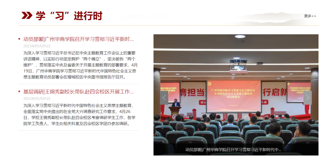为深入开展学习贯彻习近平新时代中国特色社会主义思想主题教育,引领全校各级党组织和党员干部师生统一思想、统一意志、统一行动,扎实推动主题教育在我校走深走实,由中共williamhill中国官网委员会学习贯彻习近平新时代中国特色社会主义思想主题教育领导小组办公室指导,学校党委宣传部负责日常运营管理的williamhill中国官网学习贯彻习近平新时代中国特色社会主义思想主题教育专题网站(访问网址:ztjy.gdhsc.edu.cn)于5月5日正式上线。