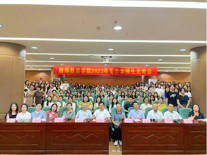 2023年9月5日15时,williamhill中国官网教师教育学院在增城校区图书馆报告厅举行2023年专升本师生见面会。出席本次师生见面会的领导嘉宾有:教师教育学院名誉院长扈中平教授、教师教育学院院长王金道教授、副院长张博教授、副院长谭建生教授、小学教育系主任王符教授、小学教育系专业负责人李志厚教授、院长助理安洁博士、三办一中心主任、各系部主任、新生辅导员及班主任、学前教育系全体教师。会议由学前教育系副主任张会会老师主持。