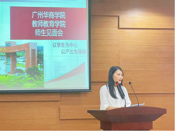 朱娜老师就安全教育、纪律教育、学生手册学习三个部分展开发言,希望同学们在学校能够遵守好校纪校规,快乐、充实地度过大学生活,做一个文明华商人。