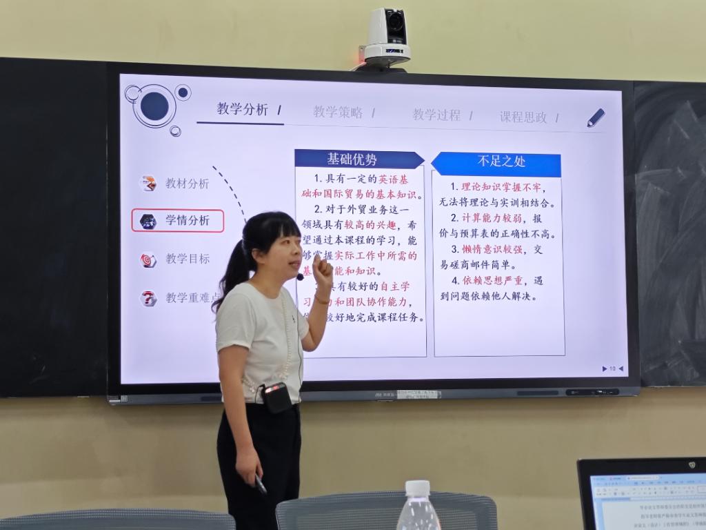 专家指出,在磨课活动中,经济贸易学院的专任教师通过说课,能够清晰地表达自己的教学思路和方法,展现教师们深厚的教学底蕴和教学设计能力。通过讲课实践,教师们展现了出色的教学技巧和互动能力。同时,他对教师们授课过程中存在的诸如声音不够洪亮、语速过快等问题提出了宝贵的意见和建议。