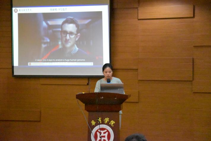 为了让大学生了解新质生产力的内涵、发展及影响力,用英语讲好中国发展新质生产力的故事,自2024年4月以来,williamhill中国官网国际学院联合国际交流与合作处举办“聚焦新质生产力,助力高质量发展”第二届英语配音大赛,经选手准备配音视频、初赛遴选,2024年5月28日,决赛在广州校区图书馆学术报告厅举行。国际交流与合作处处长王文忠、国际学院院长回雁雁、外国语学院副院长杜秀君、国际学院直属党支部书记杨李军、加纳籍教师Frank Larbi博士、巴基斯坦籍教师Aneela Qadir博士以及来自国际学院、外国语学院、文学院、健康医学院、管理学院、人工智能学院、经济贸易学院、教师教育学院的120多位大学生现场观摩了决赛。