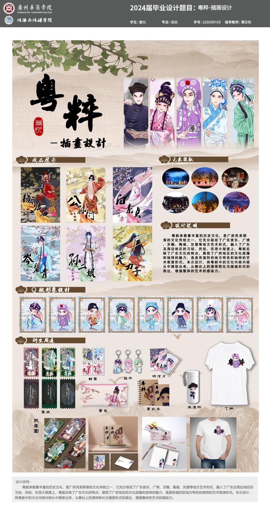 设计阐述:粤剧承载着丰富的历史文化,是广府民系群落的文化传统之一,它充分吸收了广东音乐、广绣、牙雕、陶瓷、灰塑等地方艺术形式,融入了广东及周边地区的习俗、民俗,在很大程度上,粤剧反映了广东文化的特点,展现了广府地区的文化底蕴和独特的魅力,是具有强烈的地方特色和独特的艺术表演形式。本次设计,将粤剧中的文化内核内核从中提取出来,从舞台上的演绎转化为插画形式的表达,增强整体的艺术的感染力。