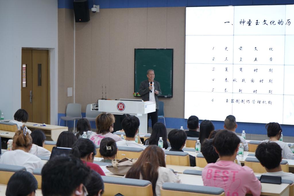 张炳光大师谈到“玉文化”的历史传承,强调玉文化不仅具有神圣性、商业性和文化性,更承载着中华民族深厚的文化底蕴和审美追求。他通过生动的案例和考古发现,向师生们展示了玉文化在不同历史时期的演变和发展,让大家深刻感受到了玉文化的独特魅力。他提到,相较于显富属性,玉对于我们更多的是以玉比德,让自己像玉一样温润、内敛、不张扬、不轻浮。