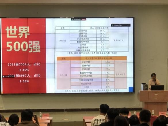 刘甜玲老师还为毕业生们讲解就业手续办理、就业信息获取渠道、就业政策、就业协议签订等方面内容,鼓励毕业生们要积极做好两手准备,特别要珍惜“金九银十”这一就业的黄金时期,勇敢地迈出就业的步伐。