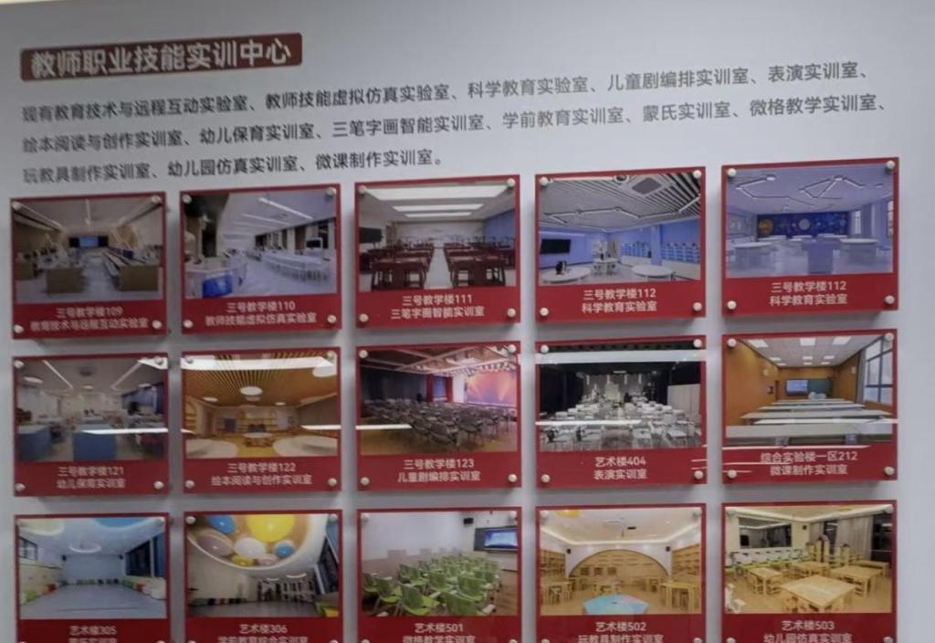 代表团成员参观了郑州工商学院的教师职业技能训练实训室,包括微格教学实训室、蒙氏实训室、学前教育综合实训室、幼儿保育实训室、绘本阅读与创作实训室、三笔字画智能实训室等。