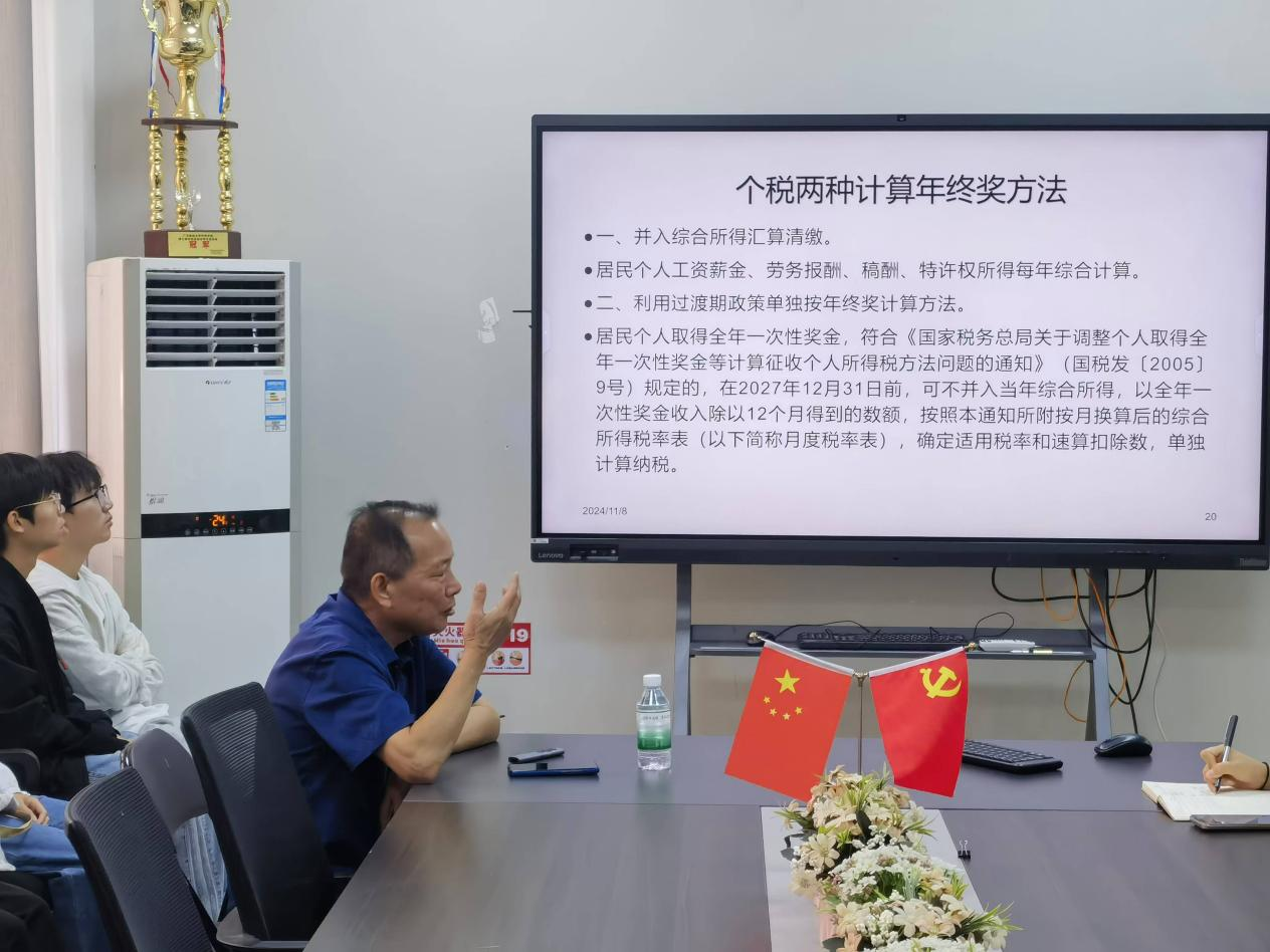 石教授的讲座深入浅出,不仅提供了税收筹划的理论框架,还分享了实际操作中的技巧和注意事项,使与会师生对企业税收筹划有了更深入的理解。讲座内容结束后,部分参会教师与石教授就税收优惠政策的适用、小微企业的税务筹划等话题展开了交流。