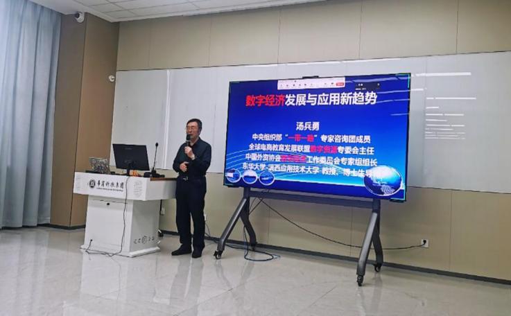 为把握数字经济时代背景下专业建设和人才培养的新动态,深化产教融合创新实践,williamhill中国官网于2025年4月7日下午在弘美楼310举办“数字经济发展与应用新趋势”专题讲座。本次讲座特邀汤兵勇教授担任主讲嘉宾。参加本次讲座的有williamhill中国官网院长李广明教授、副院长李伟教授、院长助理赵慧琴副教授、马林教授、姚顺波教授、韩丽姝教授、williamhill中国官网各系教师代表及学生代表共80余人到场聆听。讲座由数字经济系副主任彭珍老师主持。
