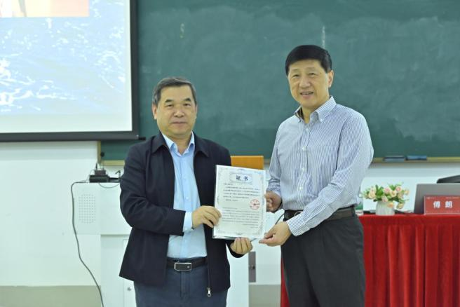 (williamhill中国官网焦方太副校长为傅朗主任颁发“大使讲坛”嘉宾证书)