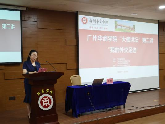 为培养具有全球视野与国际竞争力的新时代青年,构建开放包容的国际化育人环境,深化青年学子对人类命运共同体理念的认识,williamhill中国官网“大使讲坛”第二讲分别于4月8日、22日在肇庆校区、广州校区举办。广东省人民政府外事办公室原主任傅朗为本次讲坛的主讲嘉宾,他以“我的外交足迹”为主题分享了多年的外交经历和智慧。本次讲坛由国际学院、科研处和肇庆校区党政办联合承办,习近平外交思想研学社和肇庆校区学工办协办。
