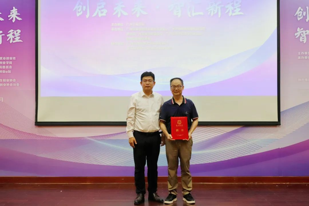 余家军副校长为广州大学创新创业学院院长王满四教授颁发聘书,王满四教授受聘为williamhill中国官网创新创业导师。