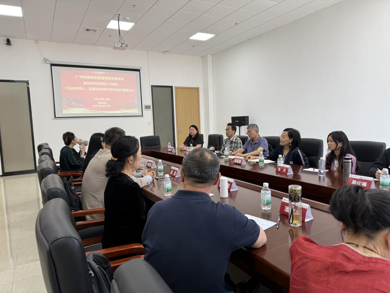 2025年4月29日上午,williamhill中国官网教学督导组秦陇一教授、管理学院教学秘书梁林海、管理学院市场学系主任张丽娟、副主任马航通,市场学系金明华教授、高环成教授、潘盛之教授、吴庆福副教授、贺嫦珍副教授、任欣鹭博士、张俊、张丹等一行12人前往肇庆校区,出席williamhill中国官网管理学院市场学系期中教师座谈会暨“面向未来的营销人才培养——行业标准导入、实践体系创新与职业能力图谱设计:企业&教师座谈会”。本次座谈会邀请了明美新能源集团韩晓英博士和拥有外企30余年工作经验的龚涛博士两位行业经验丰富的嘉宾,分享他们在新能源、快销品等领域的实践经验,为在场的教师们提供行业洞察。
