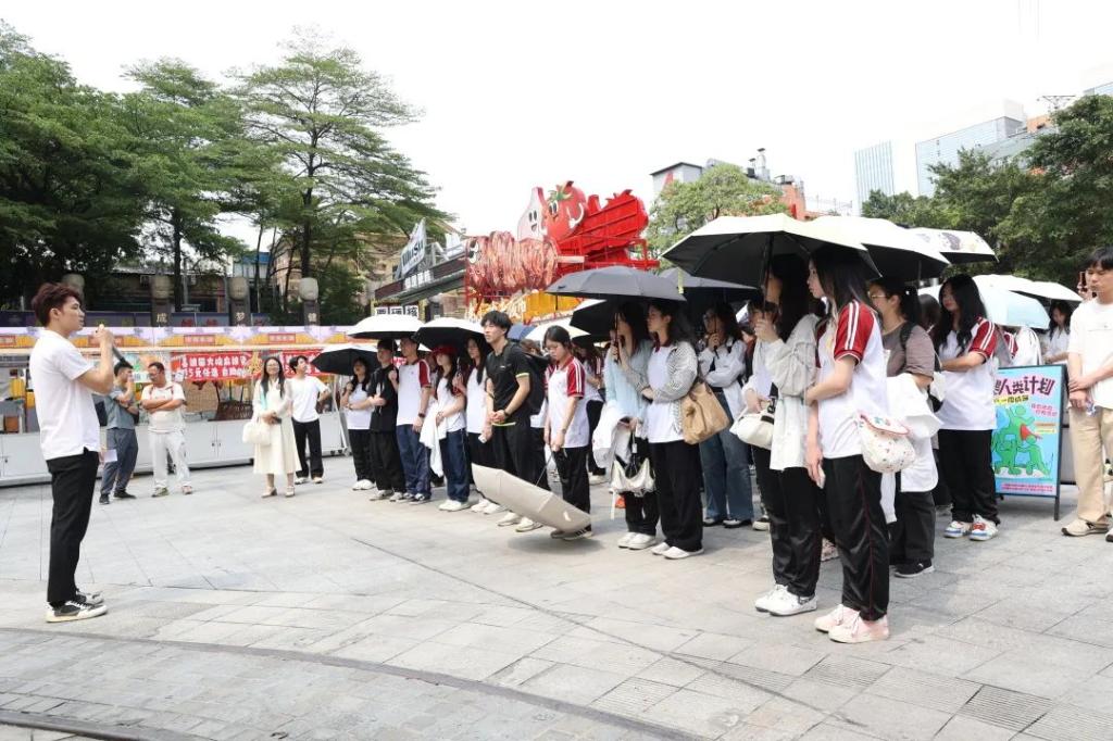 活动首站来到佛山创意产业园。作为岭南文化与现代创意交融的典范,园区通过“旧厂新生”模式,将废弃厂房改造为集非遗传承、艺术创作与科技创新于一体的创业孵化平台,成为粤港澳大湾区创新发展的缩影。在解说员的引导下,师生们先后参观了“佛山之心”“25H酒吧街”等标志性场景,深入了解产业园的运营模式与战略规划。独立设计师的扎染服饰、非遗传承人的铜凿剪纸、现调分子鸡尾酒等多元化业态,实现了传统制造业向文化创意产业的转型,展现了“小而美”创业项目的活力,启发了师生对市场细分与商业模式创新的思考。