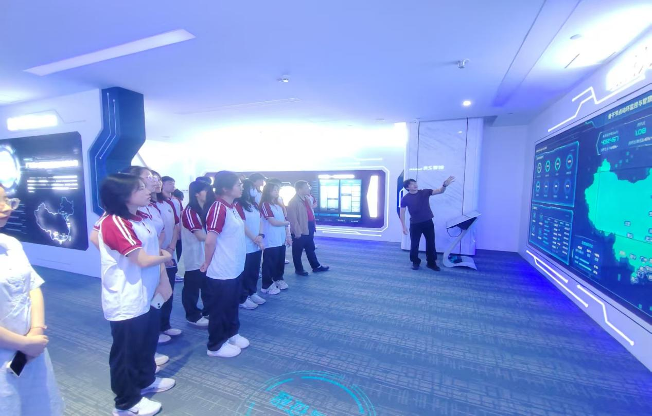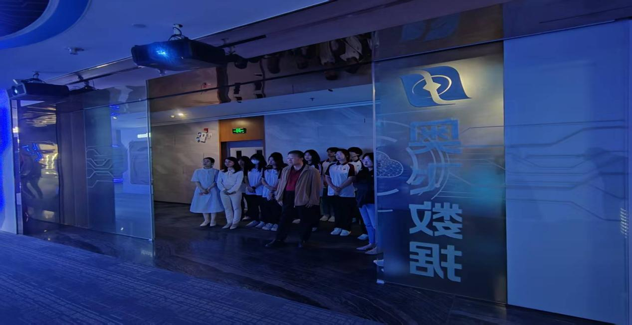 在奥飞数据数字新基建展示交流中心,师生团队参观了其智能运维中心及技术展示区,近距离感受了企业在分布式云存储、云网融合高速传输、数据智能同步灾备等领域的核心技术成果。奥飞数据战略部王毅老师为师生介绍了公司概况与业务布局,奥飞数据已在全球运营超70个云计算中心,并深度参与“一带一路”亚非欧跨国超高速通信传输海缆工程,构建了“多云多网多端”的数字产业生态平台。其自主研发的300余项核心知识产权与发明专利,为金融、政务、AI、智能制造等行业提供了安全稳定的算力支撑。