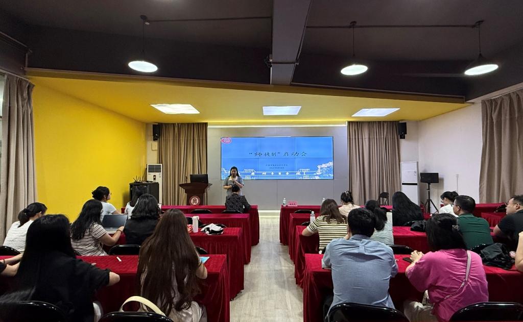 杨旻副院长在致辞中深刻阐述了“师徒制”对学院专业建设和师资队伍建设的重要意义。杨副院长指出,“师徒制”是学院培养优秀教师的重要举措,青年教师不仅可以向师傅们虚心求取教学经验、科研方法和育人智慧,还可以向优秀青年教师们请教如何迅速成长、如何使课堂教学语言精练且逻辑性强。此外,青年教师应掌握动画等多媒体技术,以创造具有特色的课堂环境。