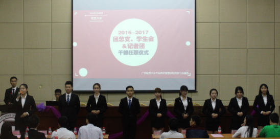 2016年10月14日晚7:00经济管理学院经济与金融系团总支、学生会,记者团宣誓大会于励志楼C208举行。