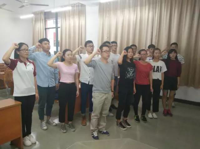 在林冰媛同学的带领下,党员面向党旗庄严的宣读入党誓词:我志愿加入中国共产党,拥护党的纲领,遵守党的章程,履行党员义务,执行党的决定,严守党的纪律,保党的秘密,对党忠诚,积极工作,为共产主义奋斗终生,随时准备为党和人民牺牲一切,永不叛党。他们高昂的声音表现出自己对党的忠诚和为人民服务的决心。