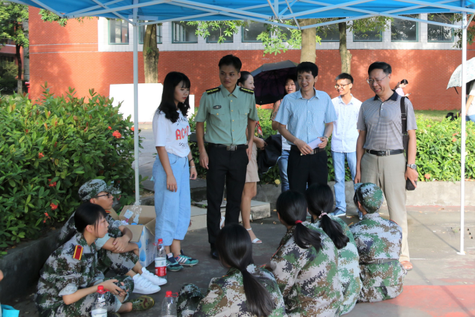 为了深入了解新生同学的军训情况,我系王德高主任,邱会锋副主任在各位老师的陪同下于2017年9月15日下午四点去看望和慰问了正在参加军训的2017级新生同学。
