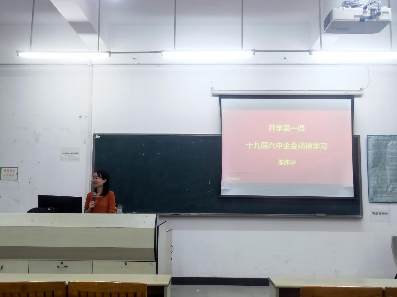 为深入学习贯彻党的十九届六中全会精神,进一步深化拓展党史学习教育,3月3日,管理学院学工办主任陈纯华老师于励志楼A406为管理学院学生开展了以“十九届六中全会精神学习”为主题的思想政治教育专题课。