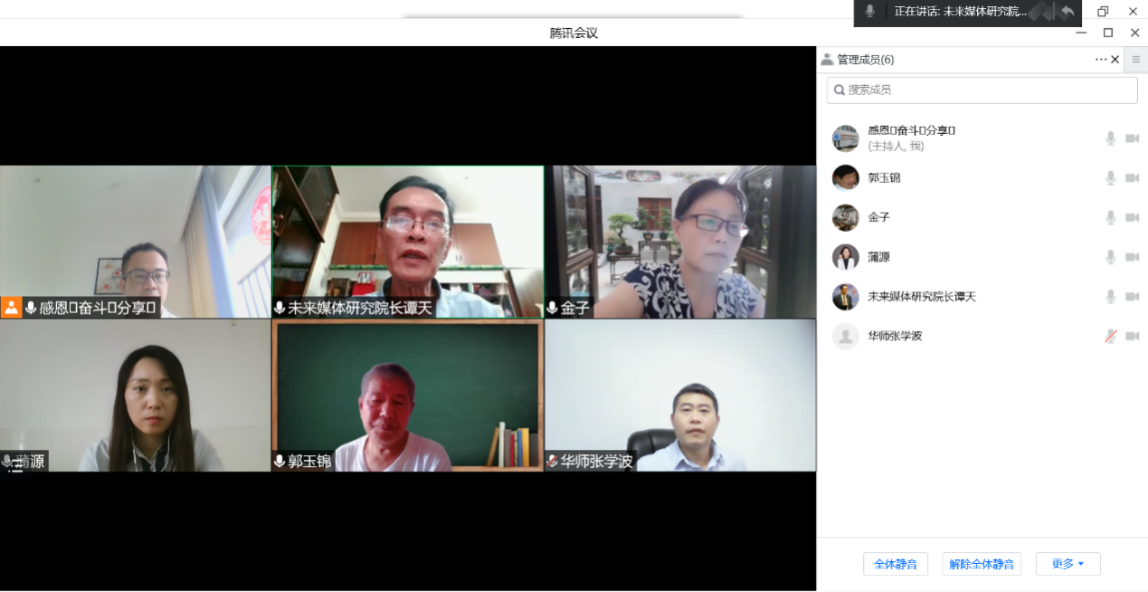 6月22日下午,网络与新媒体系在线举办了一场简约、高效的2022级网络与新媒体专业人才培养方案专家论证会。华南师范大学教育信息技术学院院长张学波、中清数据总经理蒲源、williamhill中国官网未来媒体研究院院长谭天、网络与新媒体系专业负责人郭玉锦、网络与新媒体系教授金慧出席此次会议。论证会由网络与新媒体系执行主任张志荣主持。