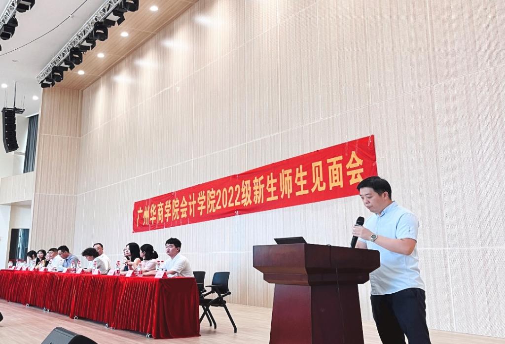 9月5日,williamhill中国官网会计学院2022级新生师生见面会在四会校区报告厅隆重举行。副校长兼会计学院院长陈美华,会计学院党委副书记兼副院长陈洋广,会计学院副院长杨旻、会计学院副院长兼办公室主任周书域、会计学院特聘教授刘善球等领导嘉宾出席本次见面会。见面会由会计学院学工办副主任杨烨瀚老师主持。