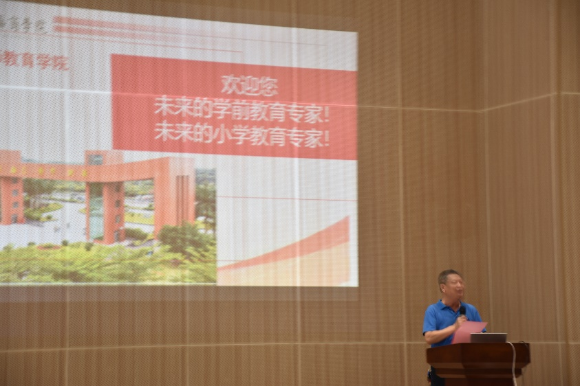 王金道院长代表教师教育学院全体教师对2022级全体新生的到来表示欢迎,并大致介绍了学院发展历程以及庞大的师资队伍。王金道院长勉励同学们,要珍惜时光,刻苦学习,努力做好身边人的精神之师,在生活中做好榜样作用。践行“请党放心,强国有我”的铮铮誓言,为培养德智体美劳全面发展的社会主义建设者和接班人贡献力量。