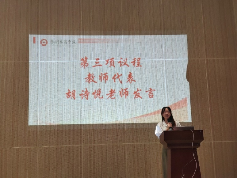 教师代表胡诗悦老师表示,大学阶段是同学们实现梦想、积蓄能量的关键时期,也是以个人的意愿塑造自我的重要阶段。她对同学们提出“六有”的希望:有理想、有目标、有规划、有自信、有巧思、有爱心。学为人师,行为示范,教师代表王符老师向同学们提出两点期望:一是树立理想,胸怀大志,铭记使命。二是终身学习,苦练技能,全面发展。