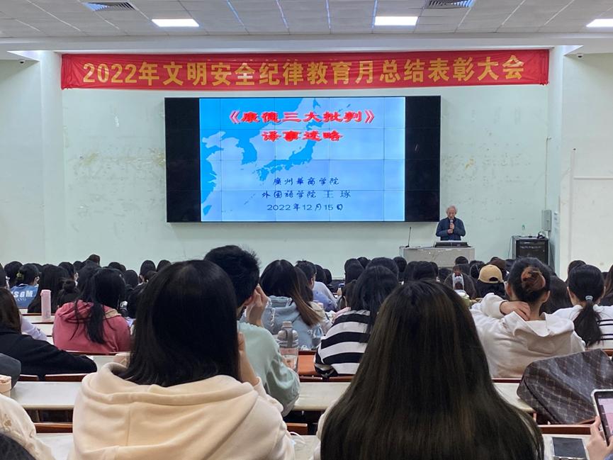 王琢院长进行授课。其授课的题目为“努力严谨,把技术变成艺术”,课程以王院长的学术经历作为引入,对自己近年来翻译的康德著作进行展示。从年轻时对这本书的迷茫到现在完成康德三大著作的翻译,王琢院长付出了巨大的努力和心血,这同时也为同学们树立了榜样,引出了对学习的思考:对于学习,我们是要“混日子”,还是要努力?他还向大家展示了部分的翻译内容,阐述了自己的理解,认为学术研究应该结合实际,对于每字每句都应该有自己的思考。最后,他对自己的未来课题作出了规划,引导同学们从中领悟学无止境的道理,他认为任何艺术的产生,都建立在对技术的钻研之上,希望同学们在今后的学习生活中能够潜心学习,同时注重品行端正,争做品学兼优的学生。
