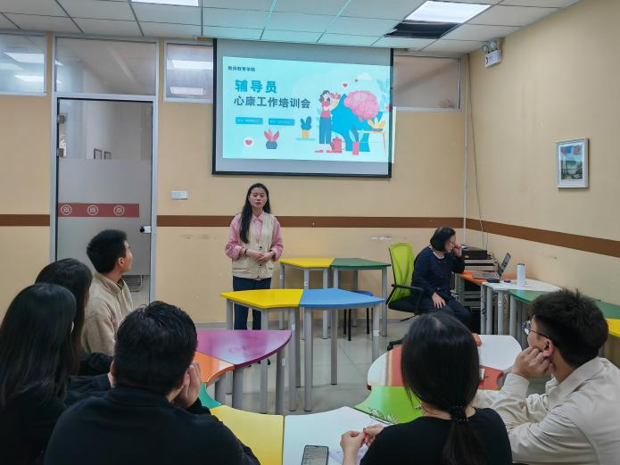 为提高教师心理健康教育能力和心理问题应对处置能力,提升教师教育学院心理健康工作水平,切实维护师生身心健康。在校心康中心统筹下,教师教育学院辅导员于2023年4月4日下午在厚德楼B108进行心理健康工作专题培训,本次培训由教师教育学院心康联络员尹娅娟主持,校心康中心王素芹教授主讲。
