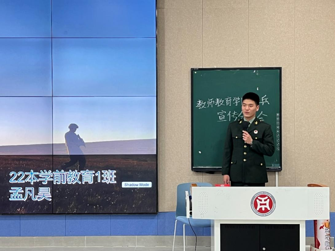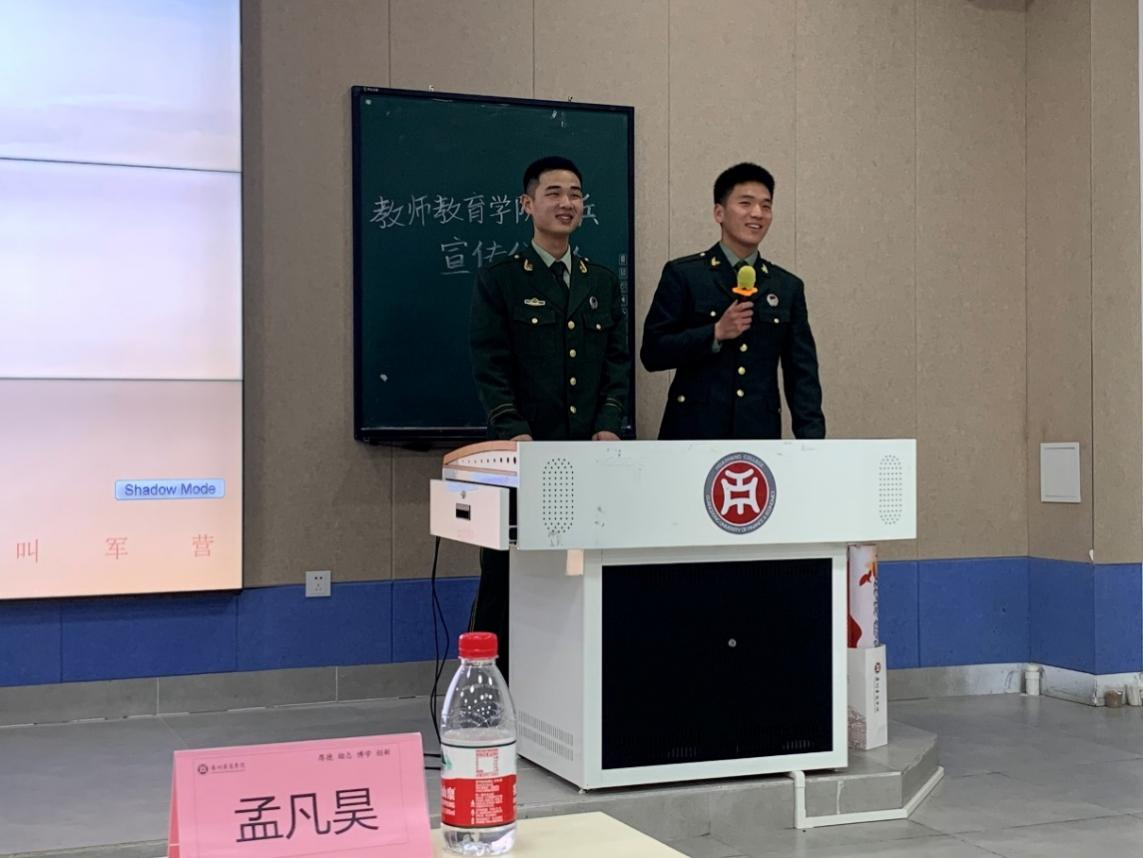 为了加强征兵政策宣传,鼓励在校大学生积极参与应征入伍,报效祖国,进一步提高学生国防意识和爱国情怀。2023年4月11日15:45,教师教育学院在增城校区和四会校区同步开展“有一种青春叫军营”征兵主题讲座。
