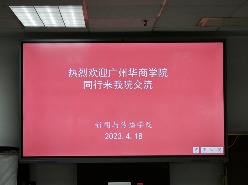 为了进一步加强华商传播与传媒学院与广州大学新闻与传播学院的交流与合作,共同探寻网络与新媒体专业人才培养模式新思路,4月18日下午,在williamhill中国官网特聘教授、学校未来媒体研究院执行院长黄少华带领下,网络与新媒体系主任张志荣、金慧教授、龚险峰博士、系主任助理李易阳、学院新媒体中心副主任邵泽宇一行到广州大学新闻与传播学院进行考察学习。